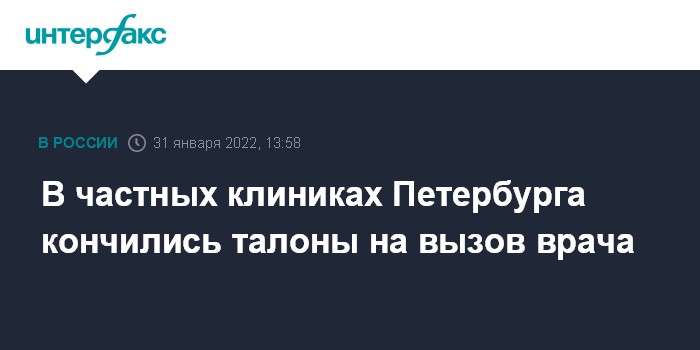 Москва. 31 января. INTERFAX.RU - В частных клиниках Петербурга из-за роста спроса кончились талоны на вызов врача на дом, в ряде клиник ближайший срок, на который можно получить талон - конец текущей недели.