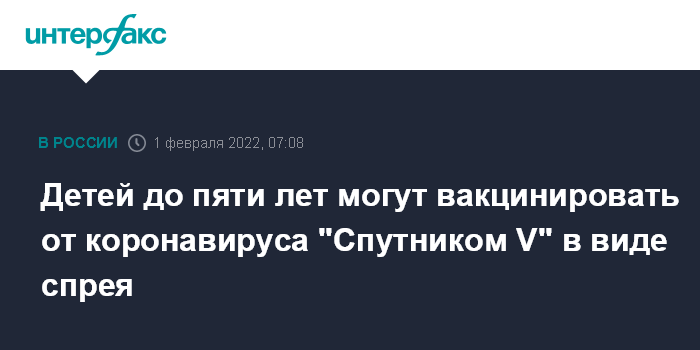 "Мы про это думаем и, скорее всего, будет интраназальная форма, во всяком случае, я буду это предлагать. Не знаю, что будет решено в результате: в 10 раз ее (вакцину "Спутник V" - ИФ) разводить или использовать интраназальную форму для детей от шести месяцев до пяти лет", - сказал Гинцбург, отвечая на вопрос, будет ли разработан препарат для вакцинации детей от пяти лет и младше.