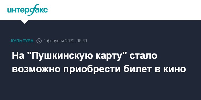 Москва. 1 февраля. INTERFAX.RU - С 1 февраля участники программы "Пушкинская карта" могут на нее приобрести бесплатный билет в кино, но только на российские фильмы.