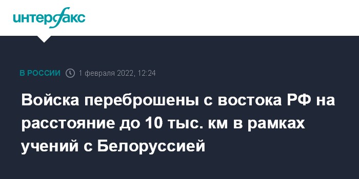 Войска переброшены с востока РФ на расстояние до 10 тыс. км в рамках учений с Белоруссией