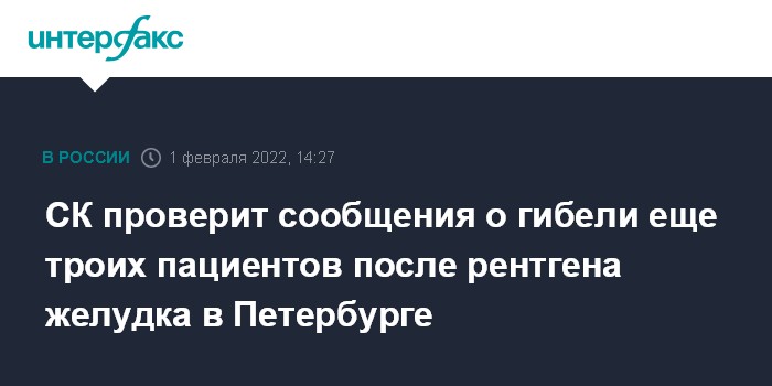 СК проверит сообщения о гибели еще троих пациентов после рентгена желудка в Петербурге