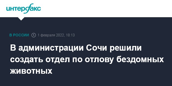 Москва. 1 февраля. INTERFAX.RU - Отдел по обращению с животными без владельцев создают в Сочи.
