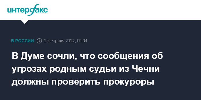 В Думе сочли, что сообщения об угрозах родным судьи из Чечни должны проверить прокуроры