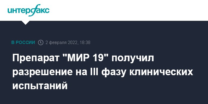 Препарат "МИР 19" получил разрешение на III фазу клинических испытаний