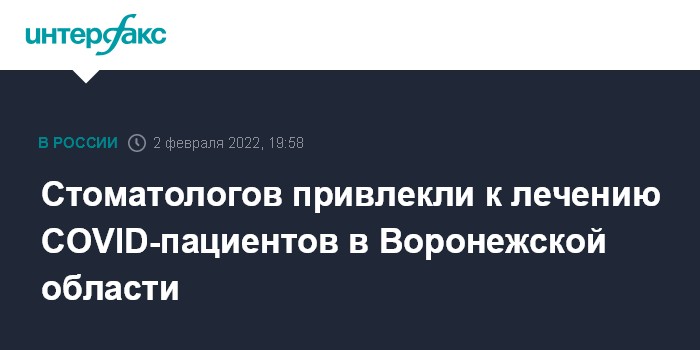 Москва. 2 февраля. INTERFAX.RU - Воронежская область начала привлекать непрофильных медицинских специалистов для приема пациентов с признаками ОРВИ и COVID-19 в поликлиниках, сообщает облдепартамент здравоохранения.