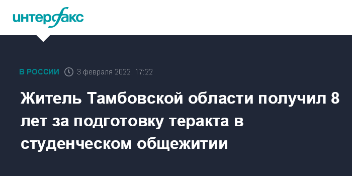 Житель Тамбовской области получил 8 лет за подготовку теракта в студенческом общежитии