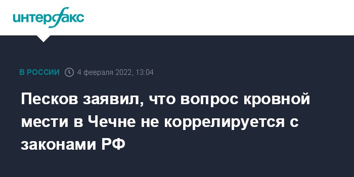Песков заявил, что вопрос кровной мести в Чечне не коррелируется с законами РФ