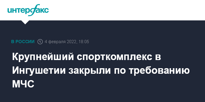 Крупнейший спорткомплекс в Ингушетии закрыли по требованию МЧС