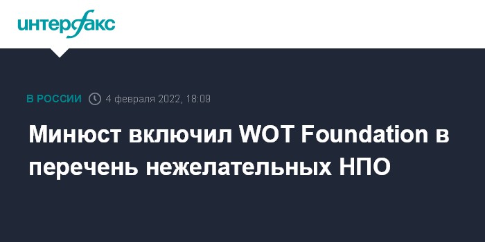 Минюст включил WOT Foundation в перечень нежелательных НПО