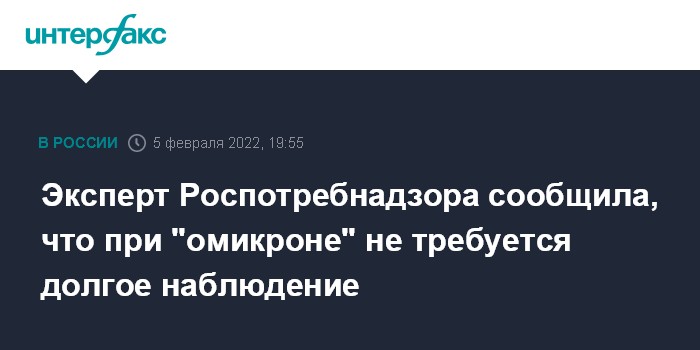 Москва. 5 февраля. INTERFAX.RU - Период наблюдения за заболевшими коронавирусом в РФ сокращен из-за особенностей "омикрона", заявила заместитель директора по клинической работе Московского научно-исследовательского института эпидемиологии и микробиологии имени Габричевского Роспотребнадзора Татьяна Руженцова.