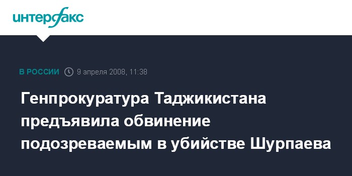 Душанбе. 9 апреля. INTERFAX.RU - Генеральная прокуратура Таджикистана предъявила обвинение гражданам республики, задержанным по подозрению в убийстве российского журналиста Ильяса Шурпаева, по статьям "убийство" и "разбой", сообщил "Интерфаксу" в среду первый замгенпрокурора Таджикистана Абдусамид Додобоев.