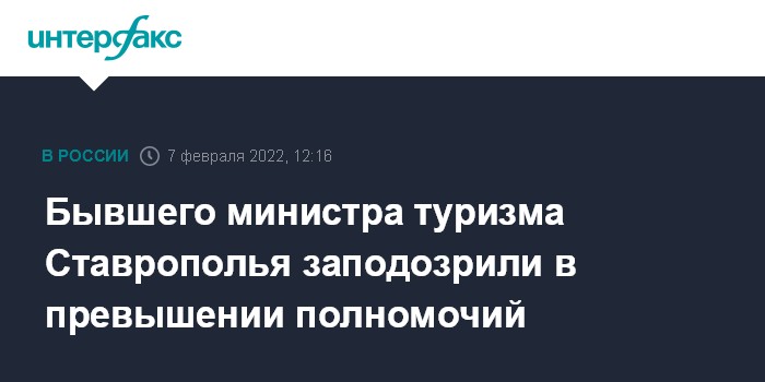 Москва. 7 февраля. INTERFAX.RU - Уголовное дело о превышении должностных полномочий при исполнении госконтракта возбуждено в отношении бывшего министра туризма и оздоровительных курортов Ставропольского края. Об этом сообщает пресс-служба прокуратуры региона в понедельник.