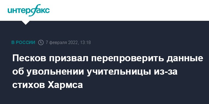 Песков призвал перепроверить данные об увольнении учительницы из-за стихов Хармса