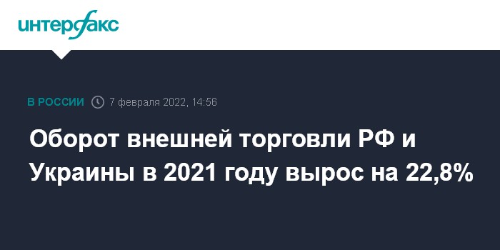 Оборот внешней торговли РФ и Украины в 2021 году вырос на 22,8%