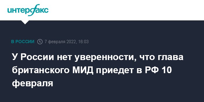 У России нет уверенности, что глава британского МИД приедет в РФ 10 февраля