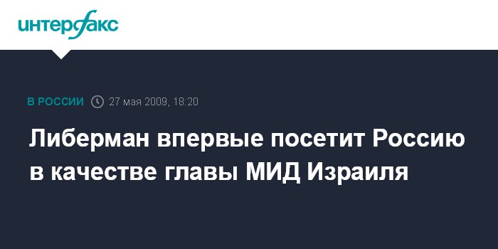 Москва. 27 мая. INTERFAX.RU - Вице-премьер, министр иностранных дел Израиля Авигдор Либерман прибудет 2 июня с визитом в Россию.