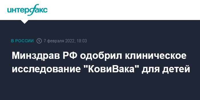 Минздрав РФ одобрил клиническое исследование "КовиВака" для детей