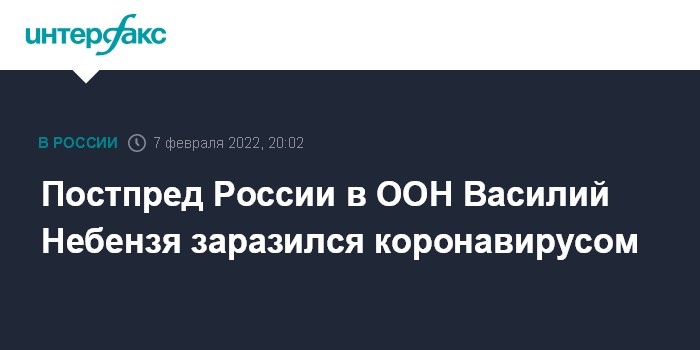 Москва. 7 февраля. INTERFAX.RU - Российский постпред в ООН Василий Небензя получил положительный тест на коронавирус и самоизолировался, сообщили в российском постпредстве.