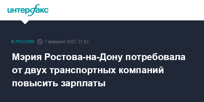 Москва. 7 февраля. INTERFAX.RU - Власти Ростова-на-Дону выявили транспортные компании, сотрудники которых получают зарплату ниже федерального МРОТ, несмотря на увеличение тарифов на перевозку пассажиров. От этих предприятий потребовали поднять зарплаты персоналу, сообщила пресс-служба горадминистрации.