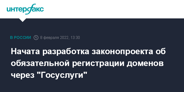 В 2020 году сообщалось об инициативе Минцифры РФ привязать регистрацию доменов к порталу "Госуслуги". Речь шла о подключении к ЕСИА регистраторов, аккредитованных в Координационном центре национального домена сети интернет.