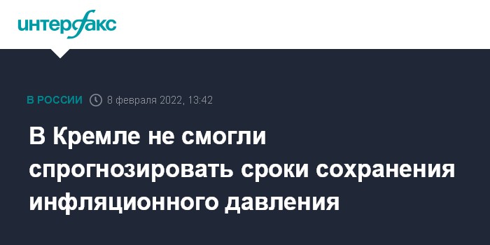 В Кремле не смогли спрогнозировать сроки сохранения инфляционного давления