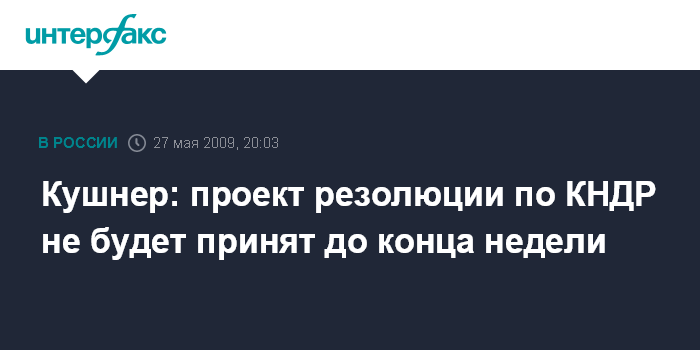 Кушнер: проект резолюции по КНДР не будет принят до конца недели