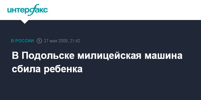 Москва. 27 мая. INTERFAX.RU - В подмосковном Подольске проводится доследственная проверка по факту наезда служебного милицейского автомобиля на восьмилетнего ребенка, сообщил "Интерфаксу" в среду источник в правоохранительных органах Московской области.