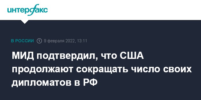 Москва. 9 февраля. INTERFAX.RU - Численность дипломатического состава посольства США в Москве продолжает сокращаться в соответствии с требованиями российской стороны, заявил в среду замглавы МИД РФ Сергей Рябков.