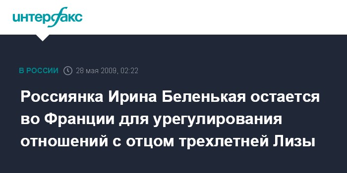 Россиянка Ирина Беленькая остается во Франции для урегулирования отношений с отцом трехлетней Лизы