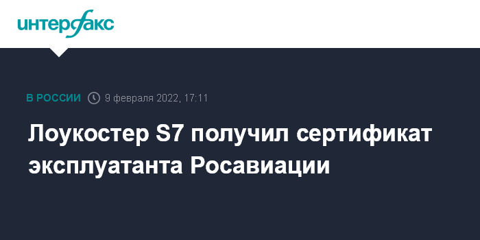 Лоукостер S7 получил сертификат эксплуатанта Росавиации