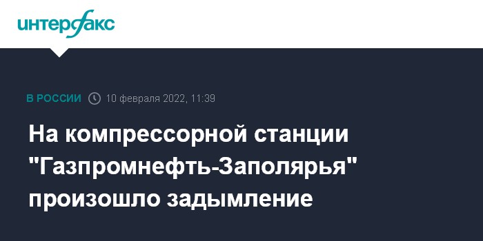 Москва. 10 февраля. INTERFAX.RU - На Песцовом месторождении "Газпромнефть-Заполярья", на кабельной эстакаде компрессорной станции произошлое задымление. В пресс-службе компании сказали, что задымление оперативно локализовали.