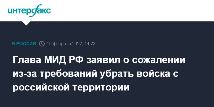 Глава МИД РФ заявил о сожалении из-за требований убрать войска с российской территории