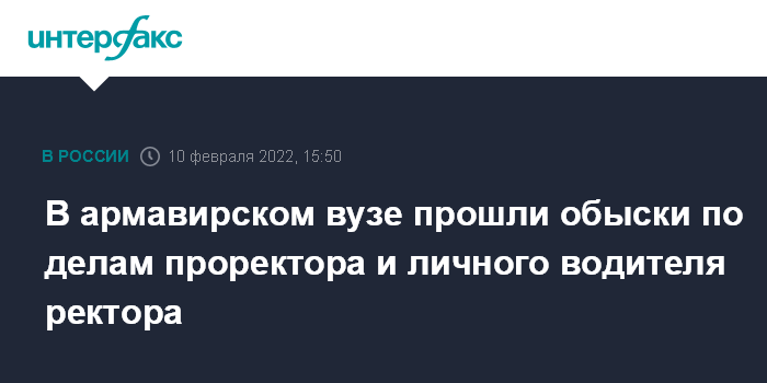 Москва. 10 февраля. INTERFAX.RU - В Армавирском государственном педагогическом университете (АГПУ) следователи проводят выемку документов и обыски по коррупционному делу проректора вуза и личного водителя ректора, сообщил "Интерфаксу" информированный источник.
