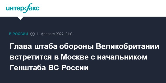 Москва. 11 февраля. INTERFAX.RU - Начальник штаба обороны Великобритании, адмирал Тони Радакин встретится в Москве с российским коллегой генералом Валерием Герасимовым, сообщает The Times.
