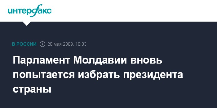 Москва. 28 мая. INTERFAX.RU - Парламент Молдавии в четверг, 28 мая предпримет вторую попытку избрать президента страны.