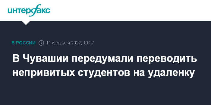 Москва. 11 февраля. INTERFAX.RU - В Чувашии отменили решение о переводе с 17 февраля на дистант студентов, которые полностью не привиты от коронавируса.