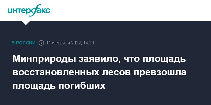 Москва. 11 февраля. INTERFAX.RU - В 2021 году в России площадь восстановленных лесов превысила площадь вырубленных и погибших; высажено свыше одного млн гектаров нового леса, сообщил в Совете Федерации глава Минприроды Александр Козлов.