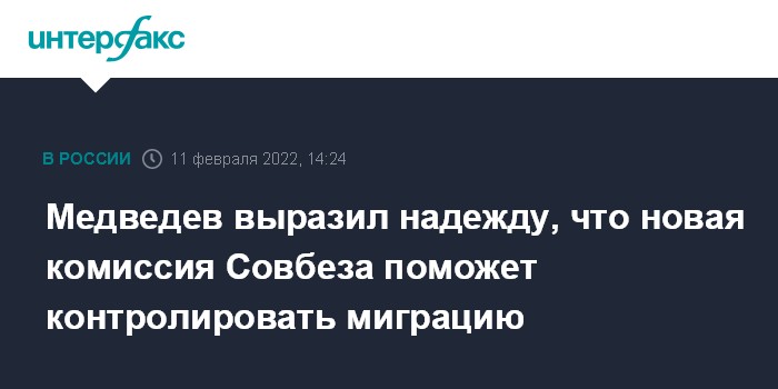 Москва. 11 февраля. INTERFAX.RU - Подписанный в четверг указ президента о создании межведомственной комиссии Совбеза России по вопросам миграции даст дополнительные инструменты по регулированию госполитики в этой сфере, ее состав будет определен в ближайшее время, заявил зампред Совбеза России Дмитрий Медведев.