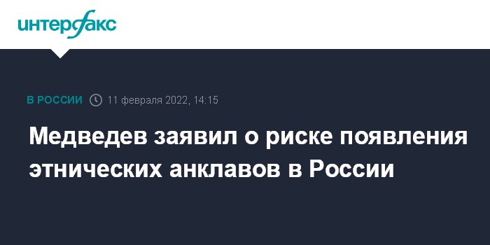 "В местах компактного проживания мигрантов существует риск образования этнических анклавов. Это мировая проблема. У нас она тоже присутствует в полном объеме", - сказал Медведев в ходе совещания по вопросу дополнительных мер по интеграции и адаптации мигрантов в российском обществе.