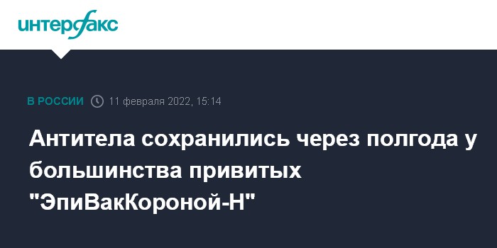 Москва. 11 февраля. INTERFAX.RU - Научный центр "Вектор" Роспотребнадзора завершил I и II фазы клинических исследований вакцины "ЭпиВакКорона-Н", результаты показывают, что антитела к COVID-19 через шесть месяцев сохраняются у 81% добровольцев, получивших две дозы вакцины, и у 98% - после трехкратного введения препарата, нежелательных реакций не выявлено, сообщили "Интерфаксу" в центре.