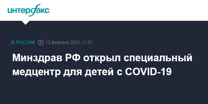 Минздрав РФ открыл специальный медцентр для детей с COVID-19