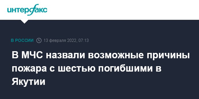 В МЧС назвали возможные причины пожара с шестью погибшими в Якутии