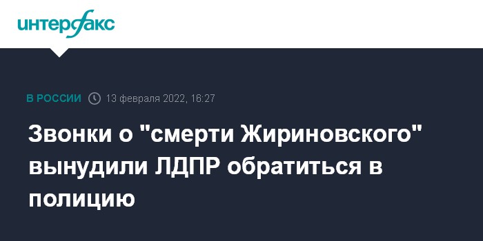 Москва. 13 февраля. INTERFAX.RU - В ЛДПР заявили, что направили обращение в правоохранительные органы в связи с поступавшими ночью членам партии звонками о смерти лидера либерал-демократов Владимира Жириновского.