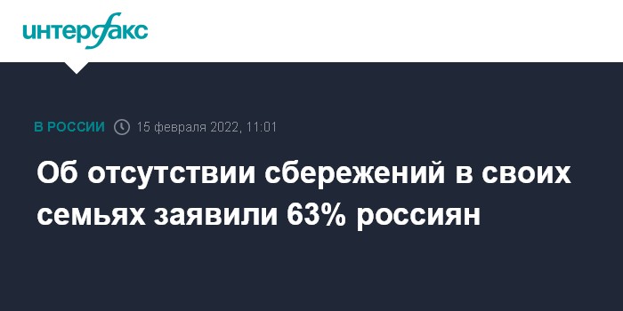 Об отсутствии сбережений в своих семьях заявили 63% россиян