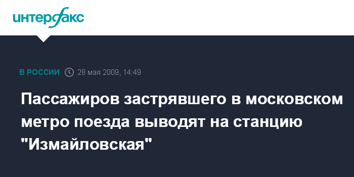 Пассажиров застрявшего в московском метро поезда выводят на станцию "Измайловская"
