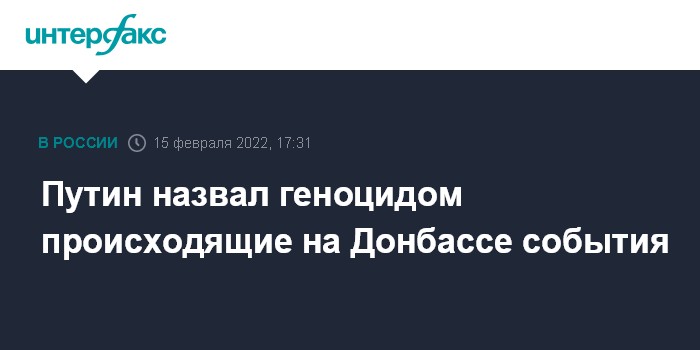 Москва. 15 февраля. INTERFAX.RU - Подвижек в реализации Минских соглашений, в том числе в вопросах особого статуса Донбасса и проведения местных выборов там, до сих пор нет, заявил президент РФ Владимир Путин. По его мнению, то, что происходит на Донбассе – это геноцид.