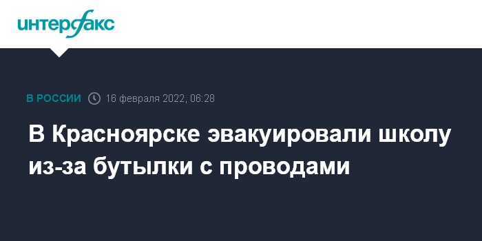 Москва. 16 февраля. INTERFAX.RU - Полиция в Красноярске проводит проверку по факту эвакуации школы из-за бутылки с проводами, оставленной там двумя подростками, сообщили журналистам в пресс-службе главного управления МВД по краю.