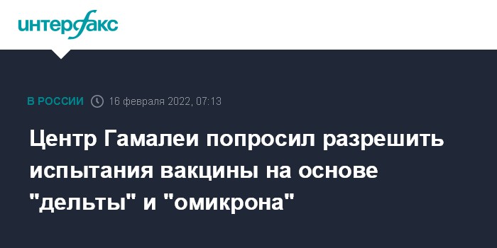Москва. 16 февраля. INTERFAX.RU - Центр имени Гамалеи в ближайшее время ждет от Минздрава РФ разрешения на проведение клинических исследований вакцины от COVID-19, созданной по новой технологии - на основе вирусоподобных частиц, в том числе штаммов "дельта" и "омикрон", сообщил "Интерфаксу директор центра, академик РАН Александр Гинцбург.