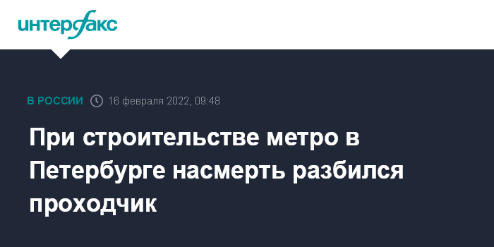 Москва. 16 февраля. INTERFAX.RU - В Кировском районе Петербурга в шахте строящейся станции метро "Путиловская" погиб рабочий, сообщил "Интерфаксу" информированный источник.