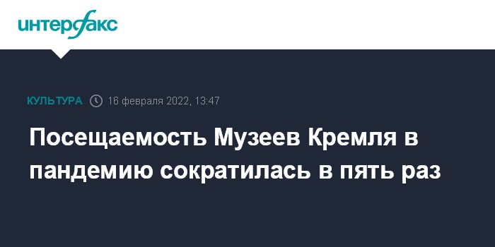 Москва. 16 февраля. INTERFAX.RU - В 2021 году музеи Московского кремля приняли около 550 тысяч посетителей, это примерно в пять раз меньше, чем в допандемийных 2018-2019 годах, сказала гендиректор музеев Елена Гагарина.